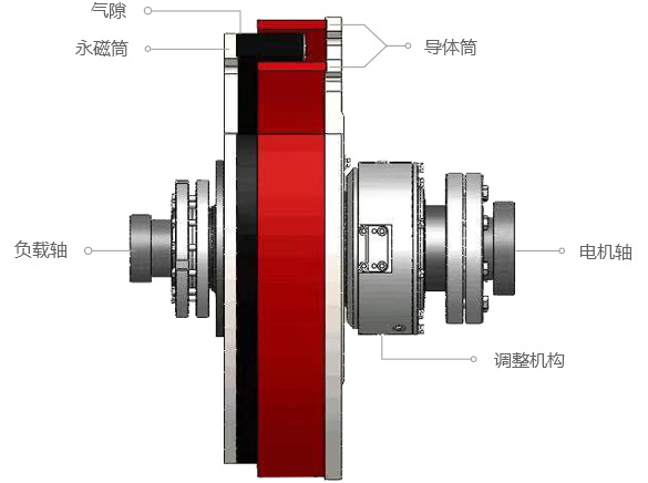 永磁調(diào)速器扭矩傳遞原理和耦合器相同,在耦合器基礎(chǔ)上增加了調(diào)速機構(gòu),通過電動執(zhí)行器,可以調(diào)節(jié)導(dǎo)體和永磁體的有效耦合面積,改變兩者之間傳遞的扭矩大小,實現(xiàn)可調(diào)節(jié)、可控制的扭矩輸出,達到負載調(diào)速和節(jié)能的目的。