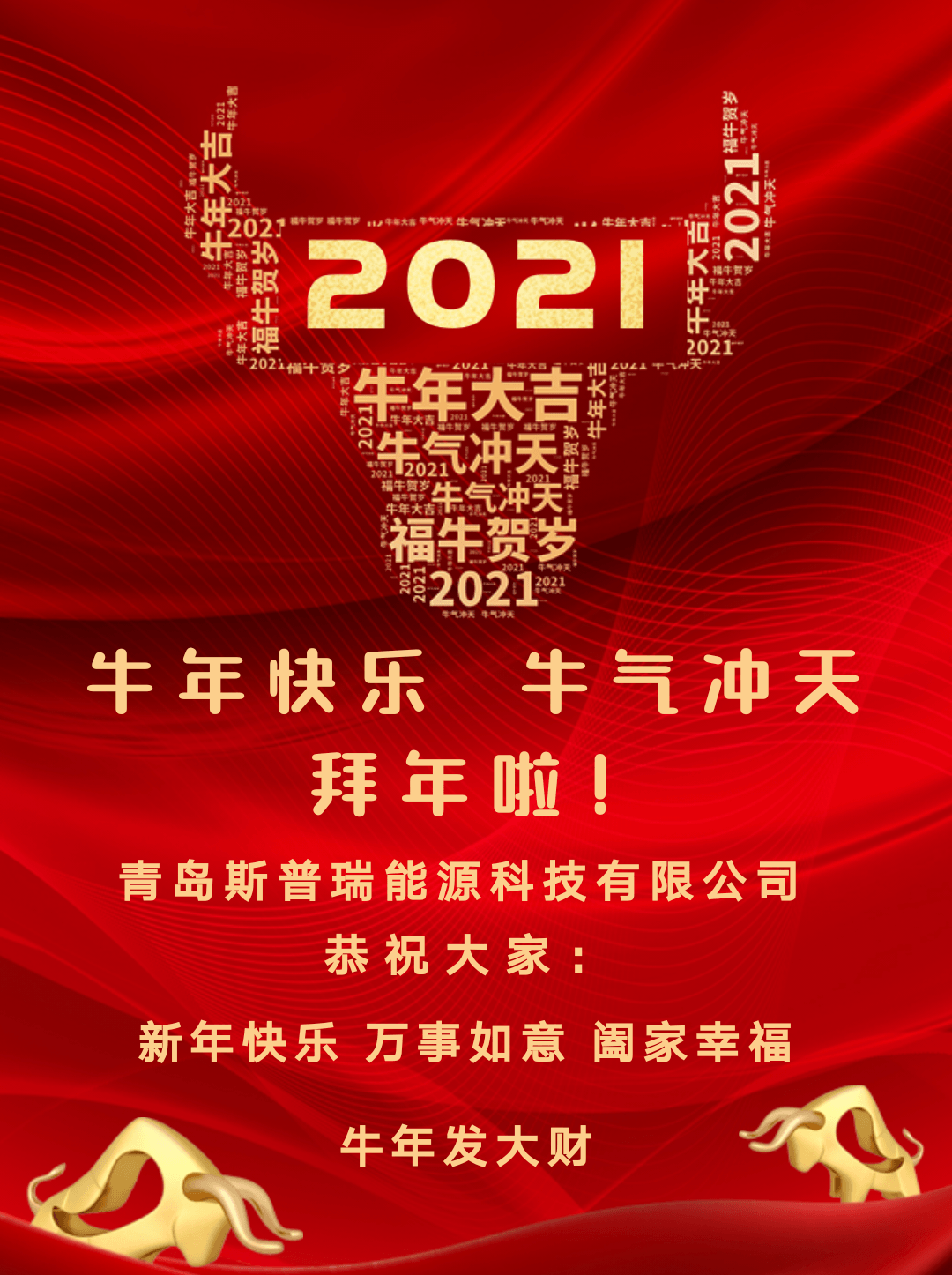 青島斯普瑞能源科技有限公司給您拜年啦!恭祝您新春快樂,牛年大吉,萬事如意,闔家幸福!